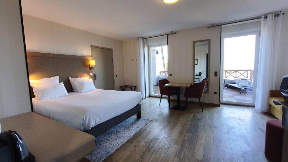 Spacieuse et confortable, profitez de notre chambre Panoramique Vue Mer et de sa grande terrasse pour admirer les paysages spectaculaires de la Côte de Granit Rose.
